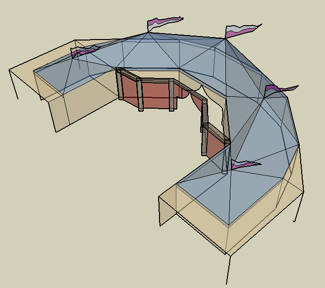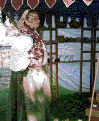 More details on "New Worlds' Tour -- continued" and past shows.The Stage -- If you decided to have a period looking portable theatre for your faire, you might consider creating the following: 1) modeled loosely after The Globe's performing space, 2) large tented look with flags on top, 3) curtained entrances and exits, 4) 24' by 10' performing space, 5) controlled sightlines, 6) backstage area for storage, preparation, moving on/off, and FX, 7) green room, 8) costume storage and changing area, and 9) a concession or merchant space. It also would need to be rain, fire, and wind proof. Then you realize what it would cost for designing, building, revising, storing, repairing, erecting, tearing down, plus "maintaining" the theatre during an event.